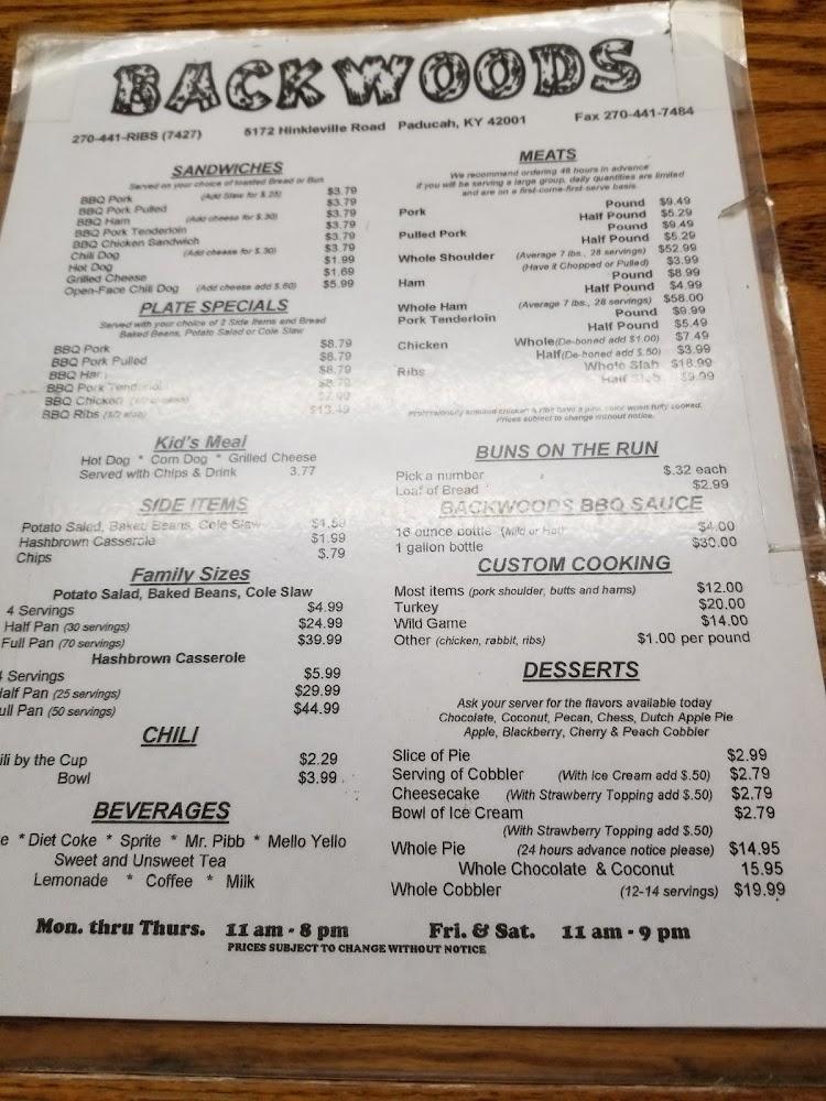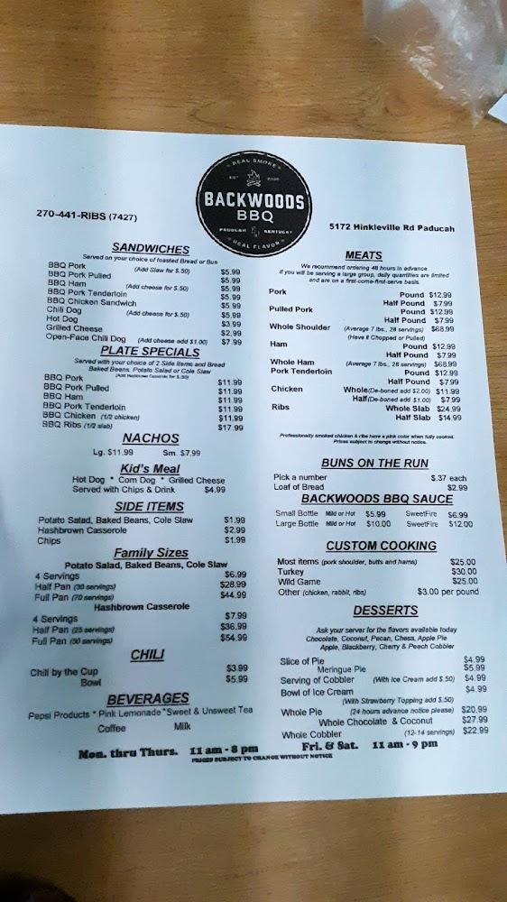 Welcome to Backwoods BBQ, your go-to destination in Paducah for mouthwatering grilled specialties and classic American cuisine. Conveniently located at 5172 Hinkleville Rd, we offer a relaxed atmosphere perfect for families, groups, and solo diners. Enjoy a delightful array of menu options available for dine-in, takeout, and delivery, all at an affordable price range of $10 to $20. Our commitment to quick service and local flavors ensures a satisfying experience every visit. With wheelchair-accessible amenities and a selection of beverages, including beer and coffee, you’ll find comfort and quality at Backwoods BBQ. Come savor the taste of authentic BBQ today!