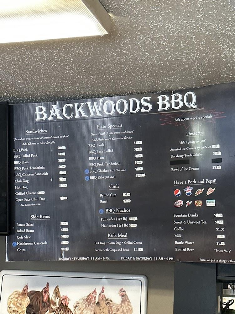 The menu at Backwoods BBQ focuses on staple barbecue options. The offerings include a variety of meats like beef brisket, ham, and chicken, all prepared with expert seasoning. Signature dishes like ribs and pulled pork dominate the attention. Sides complete the meals, with highlights such as potato chips and hash brown casserole. Sweet tea and fountain sodas enhance the selection. Desserts like chess pie and pecan pie round off the dining experience. The mix of flavors makes every meal a culinary treat, appealing to various palates.